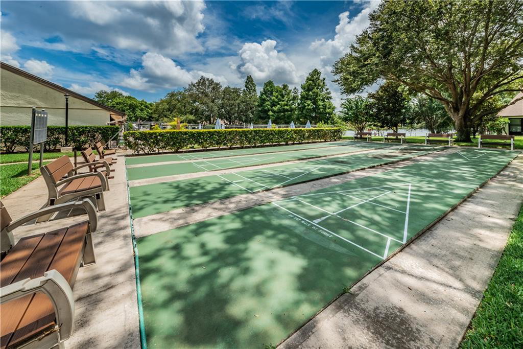 Village on the Green is a deed-restricted, 55+ community in Clearwater, Florida, offering a beautiful clubhouse with a solar heated pool that overlooks a tranquil lake, shuffleboard court, picnic tables and a grill. Inside is a fitness area, library, card room, kitchen and banquet room.