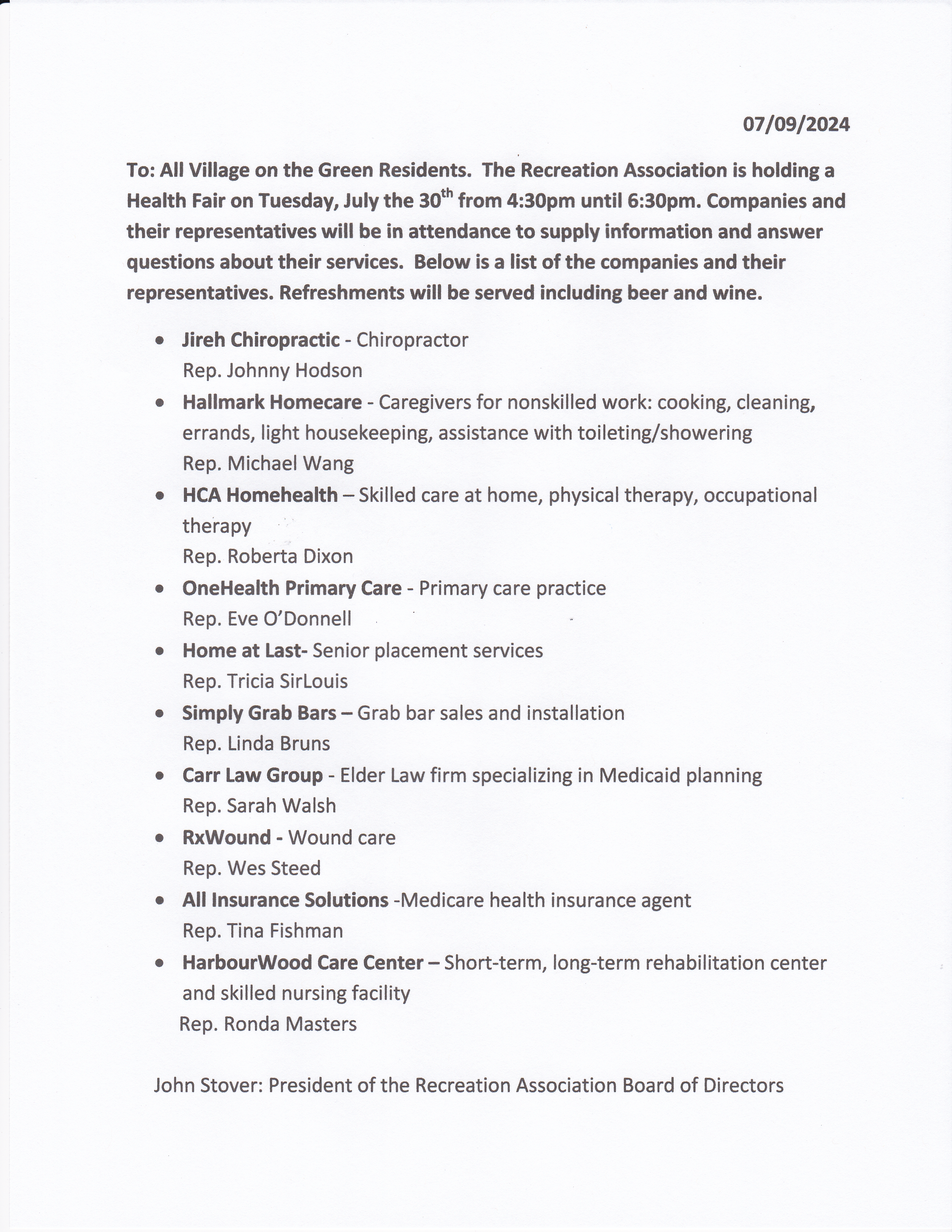 TO ALL RESIDENTS OF VILLAGE ON THE GREEN